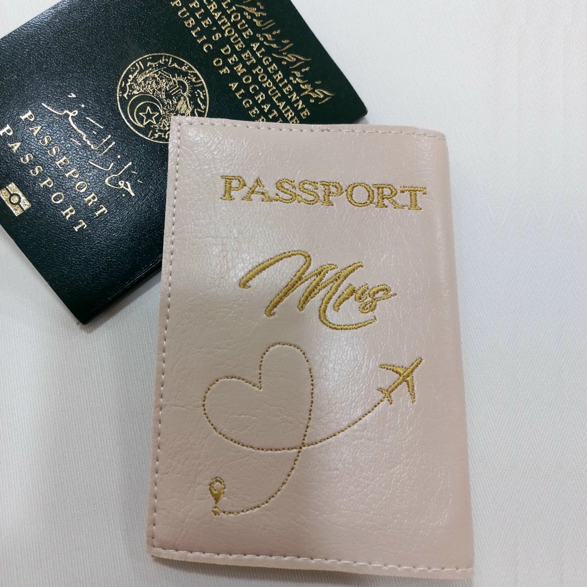 Voyagez avec élégance et style grâce à notre Protège passeport personnalisé et brodé. Le dessin brodé représente un petit avion en train de tracer une courbe gracieuse pour former un cœur, accompagné de l’inscription « Mrs » ou « Mr » personnalisée avec leur prénom. Fabriqué à la main avec amour et grande précision en simili cuir de haute qualité, ce protège-passeport sera le compagnon idéal de tous leurs voyages. Offrez-le en cadeau à vos amis ou à vous-même pour ajouter une touche de sophistication à vos aventures.